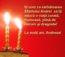 Sf Andrei a fost un ucenic al lui Ioan Botezatorul si este cunoscut pentru ca este cel care a raspandit crestinismul pe teritoriul tarii noastre. De sarbatoarea sfantului Andrei, cu siguranta fiecare dintre noi are o persoana draga careia sa-i transmita urari de bine alaturi de un calduros “La multi ani”! Trimite si tu o felicitare de Sf Andrei!