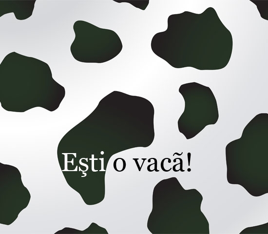 Insulta-ti in gluma o prietena si radeti impreuna de felicitarea cu pete albe si negre de vaca.