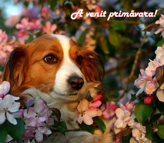 Catel cu ochi mari printre flori de primavara - 1 Martie fericit!