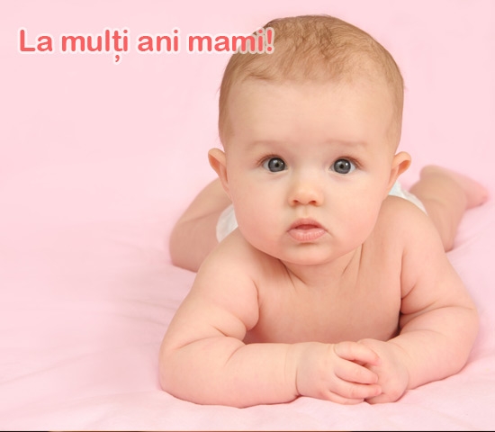 Bebelus in pat roz urand La Multi Ani mamelor.