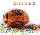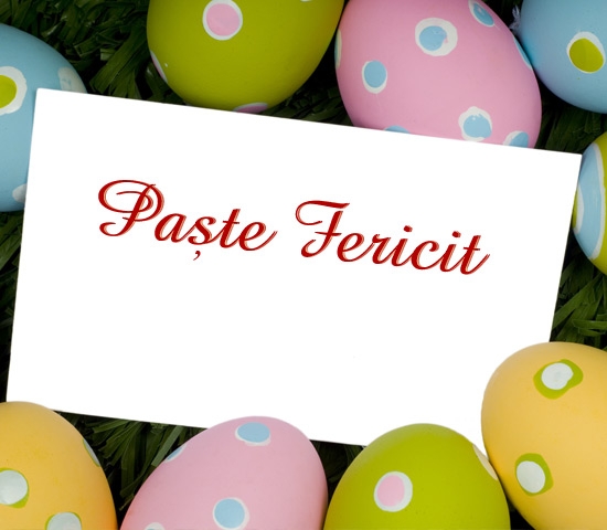 Mesaj cu Paste Fericit printre oua colorate pentru sarbatori.