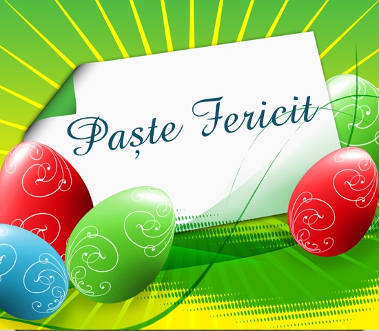Soare, oua rosii si multe urari frumoase - asta e atmosfera de Pasti, asta transmite si aceasta felicitare.