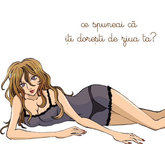 Felicitare cu desenul unei femei in desuuri sexy: arata-i ca ziua lui e o ocazie speciala.