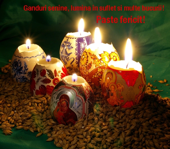 Lumanari in coji de oua incondeiate si o urare traditionala de Pasti.