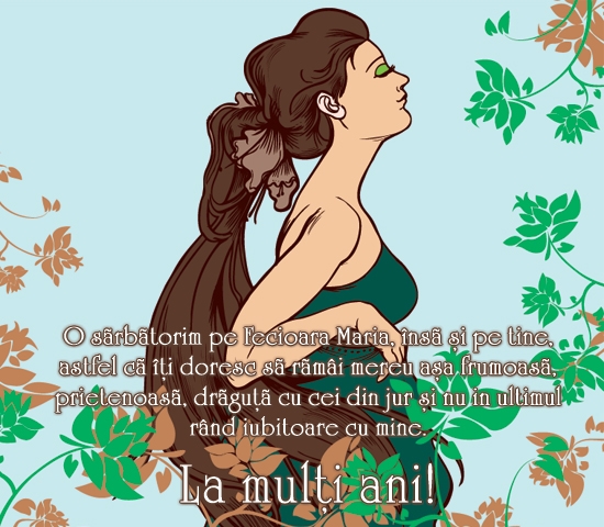 Felicitare informala si tinereasca, cu un mesaj dragastos pentru persoanele apropiate si prietenele cu numele Maria.