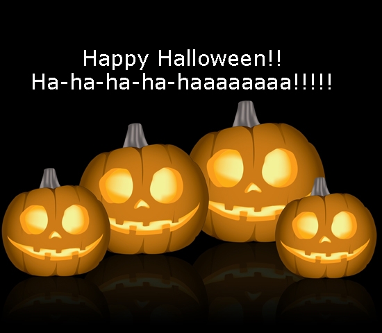 Felicitare simpla de Halloween, cu dovleci decorati zambind sinistru. Potrivita atat pentru prieteni, cat si pentru cunoscuti.